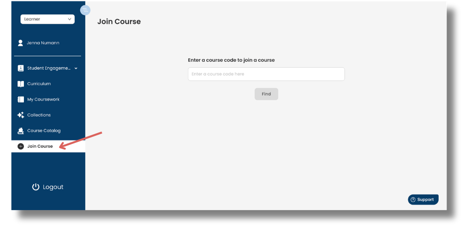 As a learner in your organization's learning Canopy, you can join a course with a course code, through a course invitation from the instructor, or from the Course Catalog.
